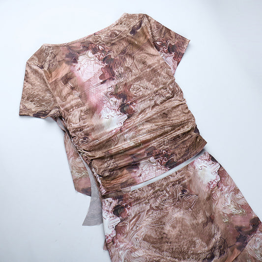 Ruffled Round Neck Printing Short Sleeve