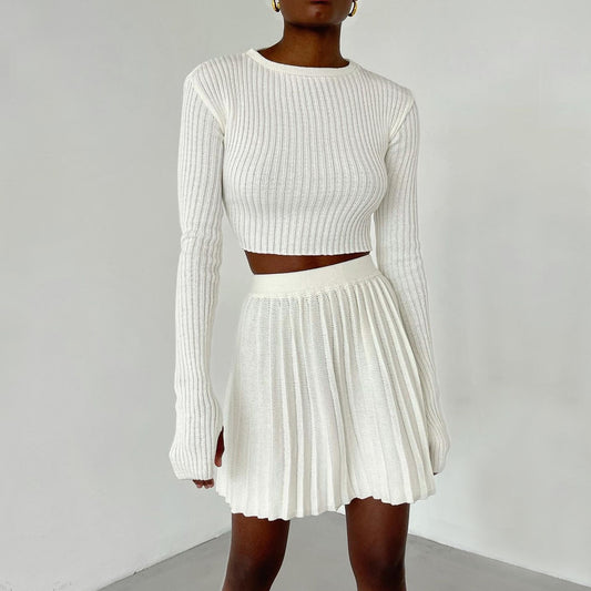 Women's Knitted Short Skirt Sweater Two-piece Suit
