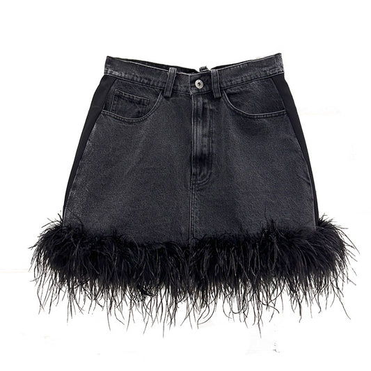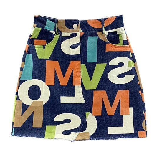 Personalized Colorful Letter Print Korean Version Of High Waisted Denim Skirt