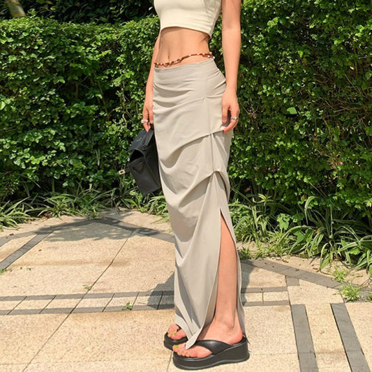 Women's High Waist Bag Hip Skirt With Slit Straps