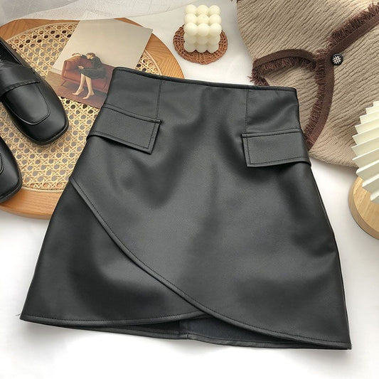 Irregular High Waist Faux Pocket A- Line Skirt Women