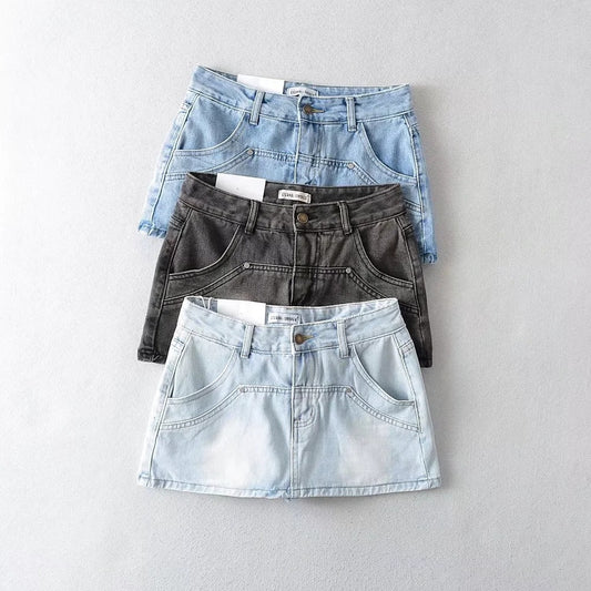 Washed And Made Of Old Design Feeling Raw Hem Denim Skirt