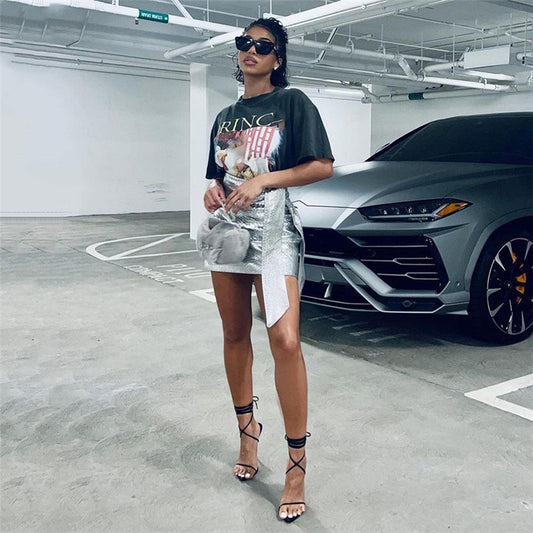 Hot Girl Street Shiny Bubble Tight Hip Dress
