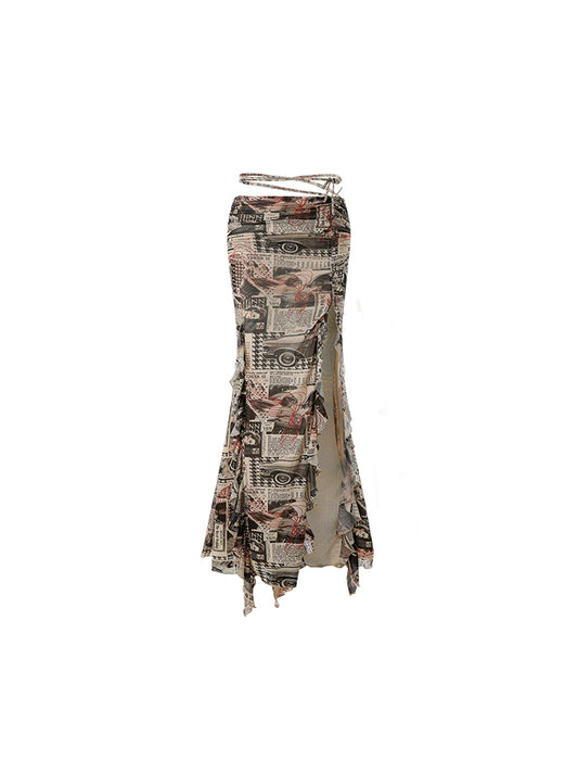 Ins Vintage Printed Hot Girl Low Waist Skirt