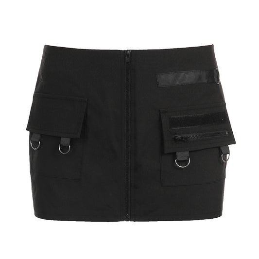 Punk Fashionmonger Personalized Asymmetric Stitching Metal Buckle Hip Skirt Sexy Hot Girl Skirt