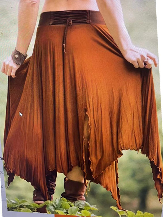 Ladies Retro Fashion Hem Irregular Elastic Waist Color Contrast Patchwork Lace-up Skirt