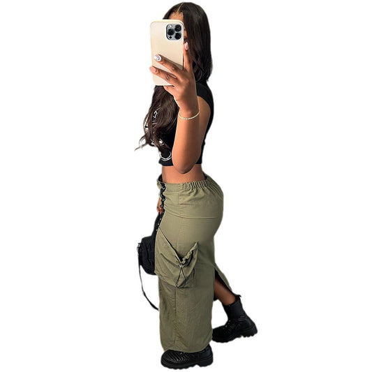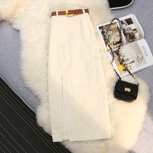 Women's Fashion Solid Color Slim Street High Waist Skirt
