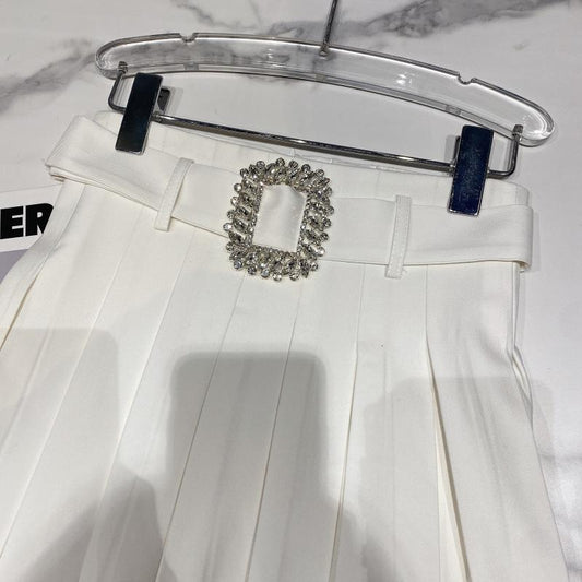 Square Rhinestone Waistband Design Anti Glare Pleated Skirt