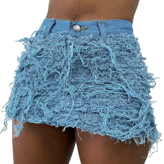 Women's Slim-fit Peplum Patchwork Denim Skirt
