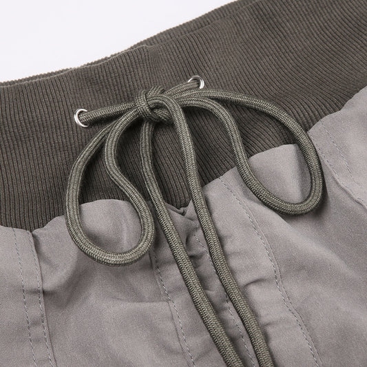 Women's Patchwork Contrast Color Lace-up Large Pocket Skirt