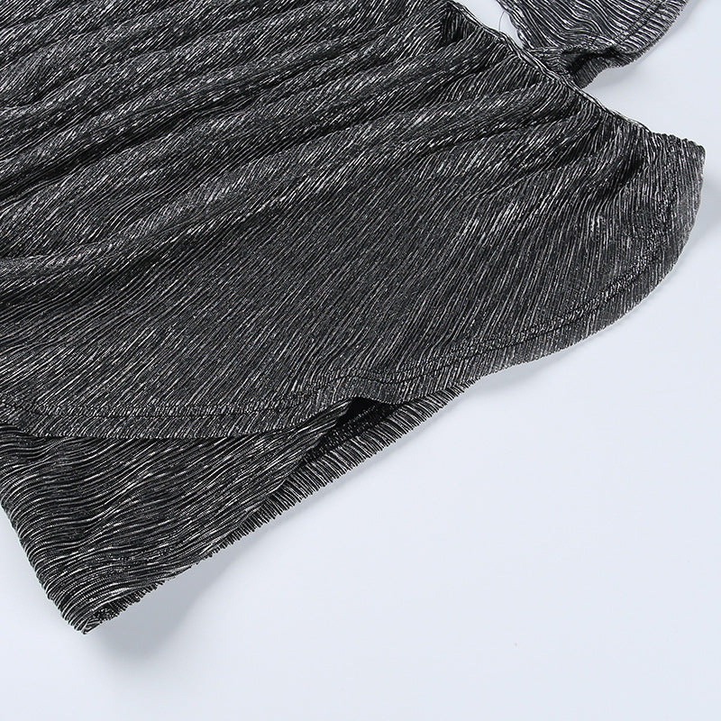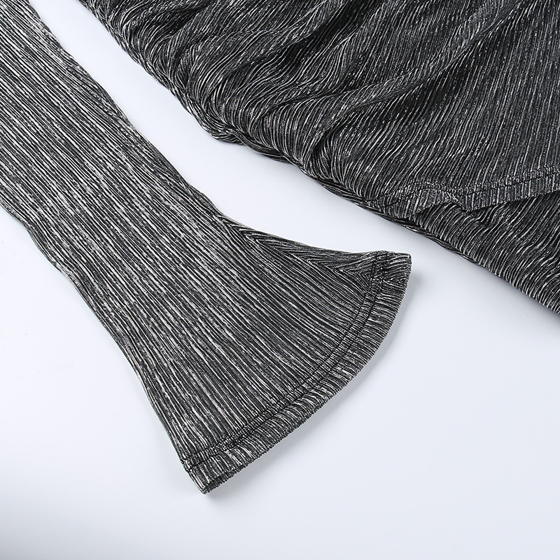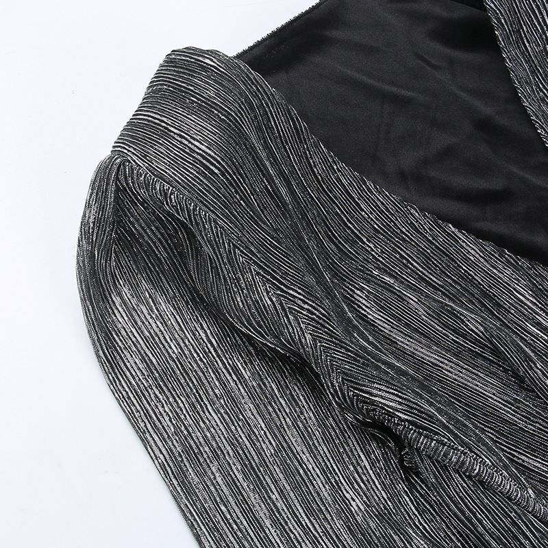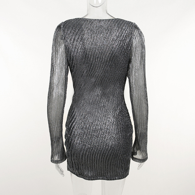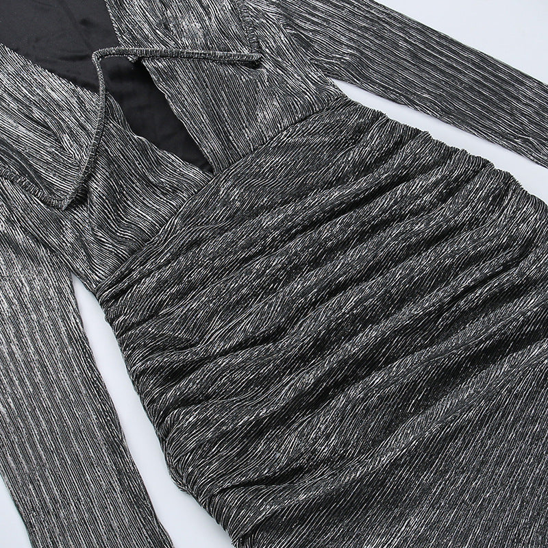 Deep V-neck Underwire Shoulder Pads Pleated Long-sleeved Sheath Dress