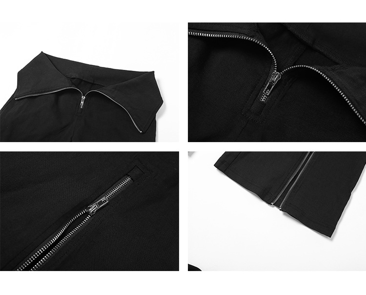 Designer Black V-shaped Flanging Zipper Bootcut Slimming High Waist Slit Casual