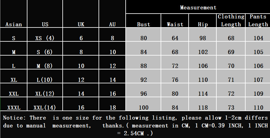 1. Asian sizes are 1 to 2 sizes smaller than European and American people. Choose the larger size if your size between two sizes. Please allow 2-3cm differences due to manual measurement.