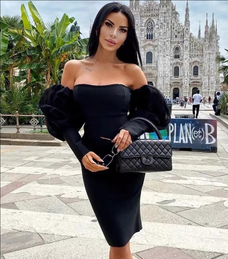 Long-sleeved One-shoulder Slim Slimming Bandage Dress