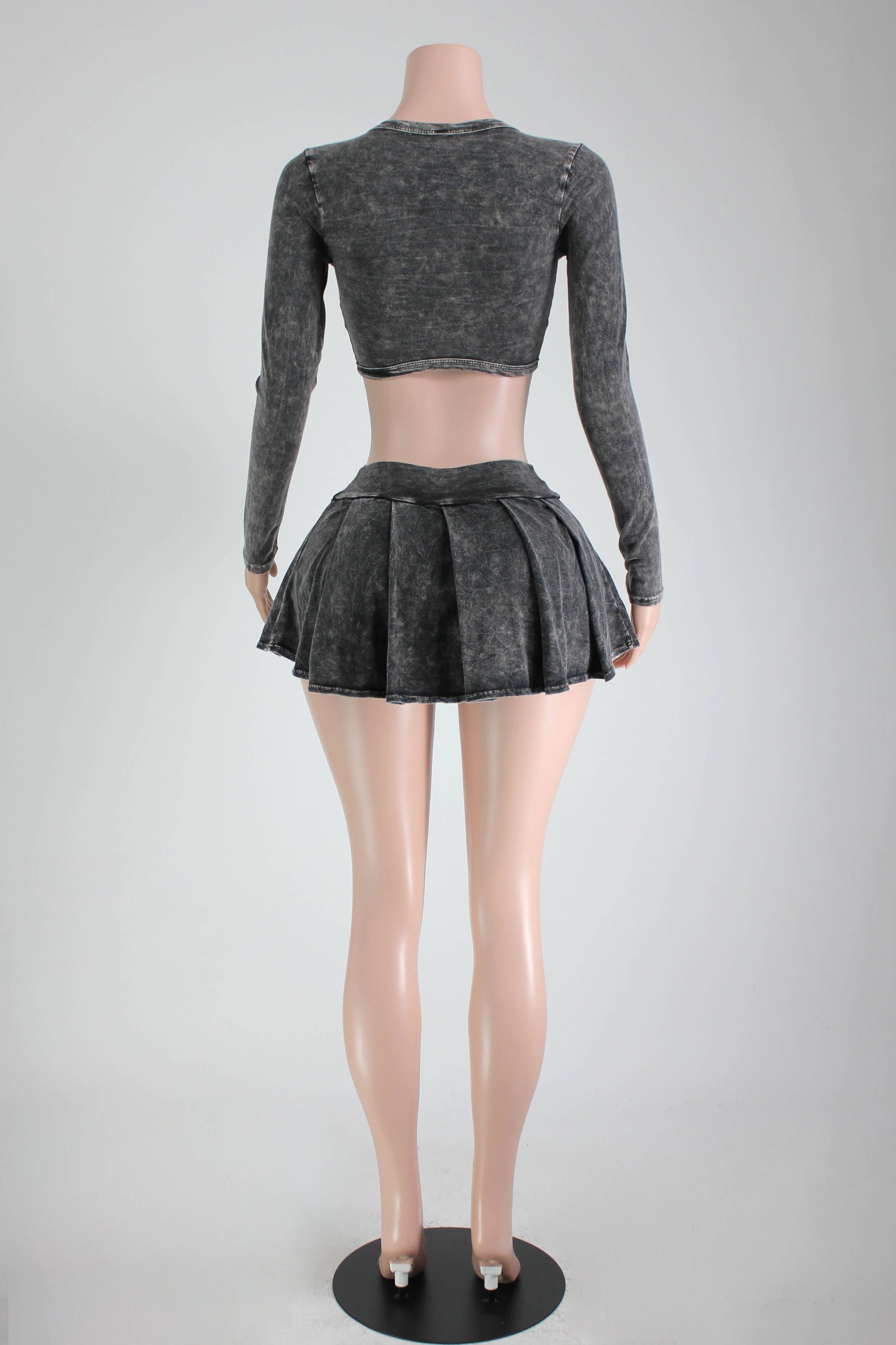 MINERAL WASH BUCKLE TOP & PLEATED SKIRT SET