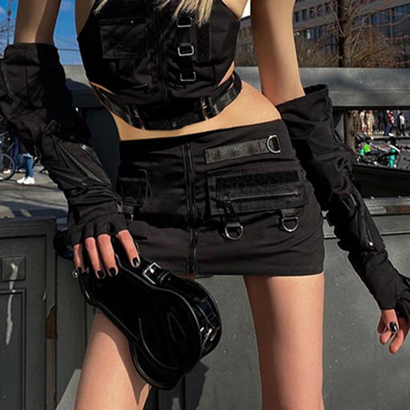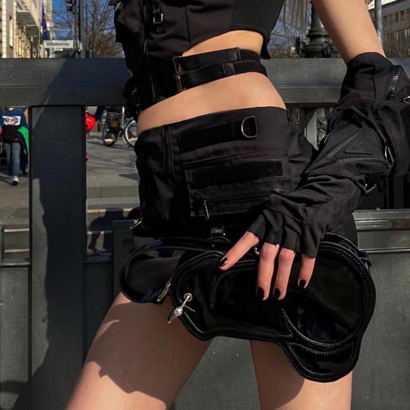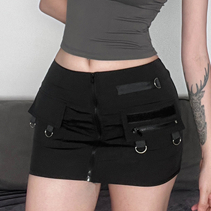 Punk Fashionmonger Personalized Asymmetric Stitching Metal Buckle Hip Skirt Sexy Hot Girl Skirt