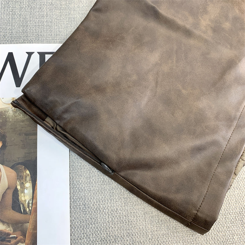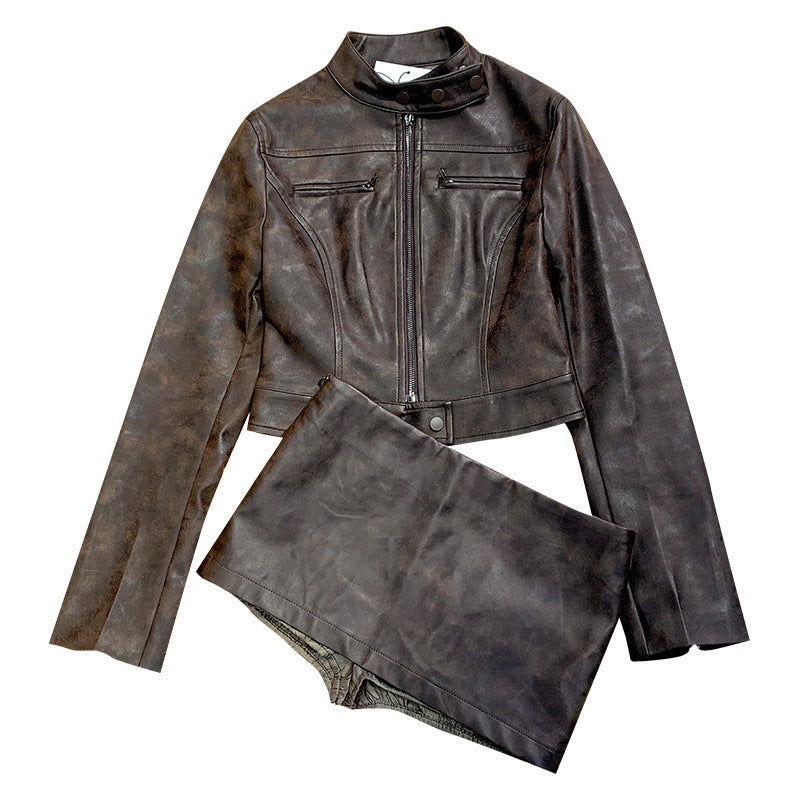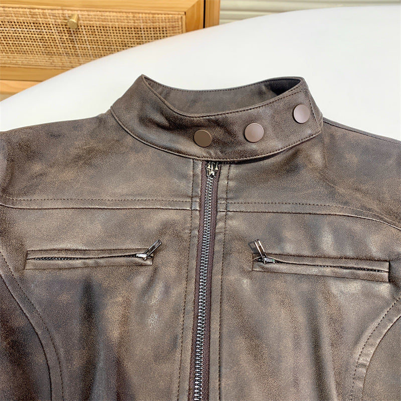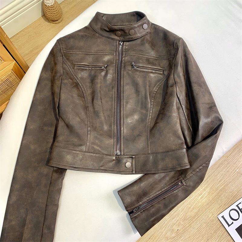 Punk Girls' Worn Slim Fit Short Leather Jacket