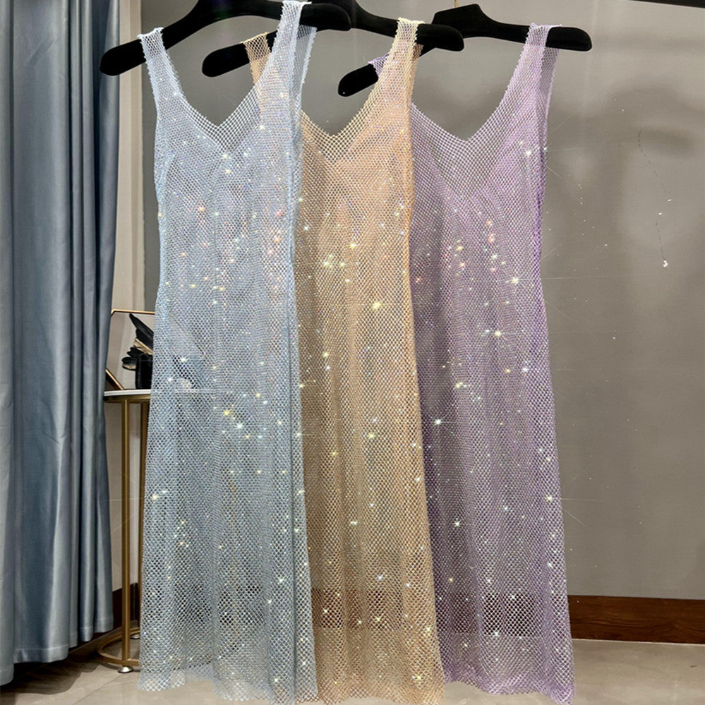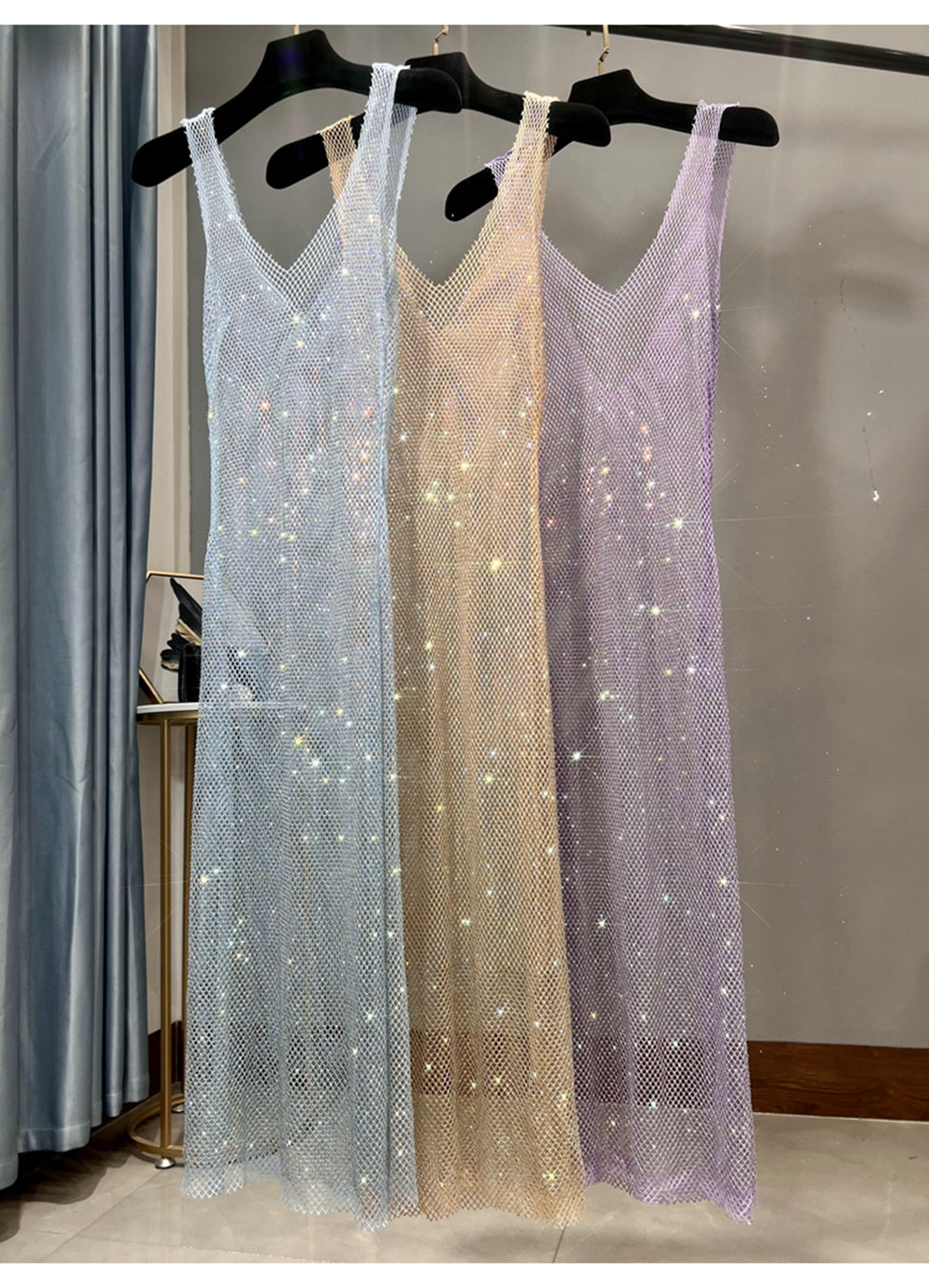 Rhinestone Mesh Base Slim Sparkling Long Skirt Girl