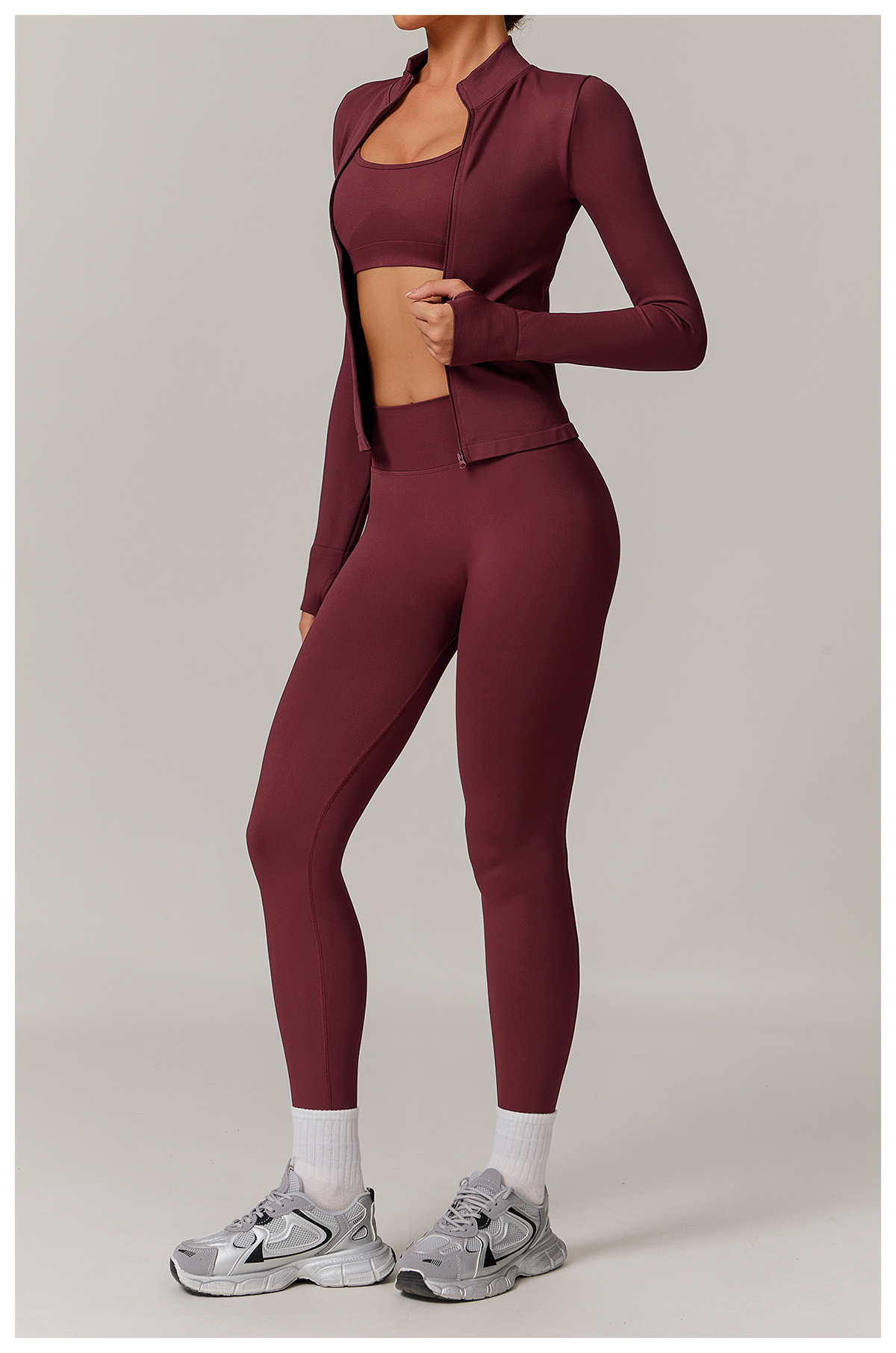 Color: 7755 coat 7137 bra 7318 trousers (three-piece set) advanced black, 7755 coat 7137 bra 7318 trousers (three-piece set) dark gray, 7755 coat 7137 bra 7318 trousers (three-piece set) cherry red, 7755 coat 7137 bra 7318 trousers (three-piece set) plum purple, 7755 coat 7137 bra 7318 trousers (three-piece set) pottery clay colors, 7755 coat 7137 bra 7318 trousers (three-piece set) navy blue