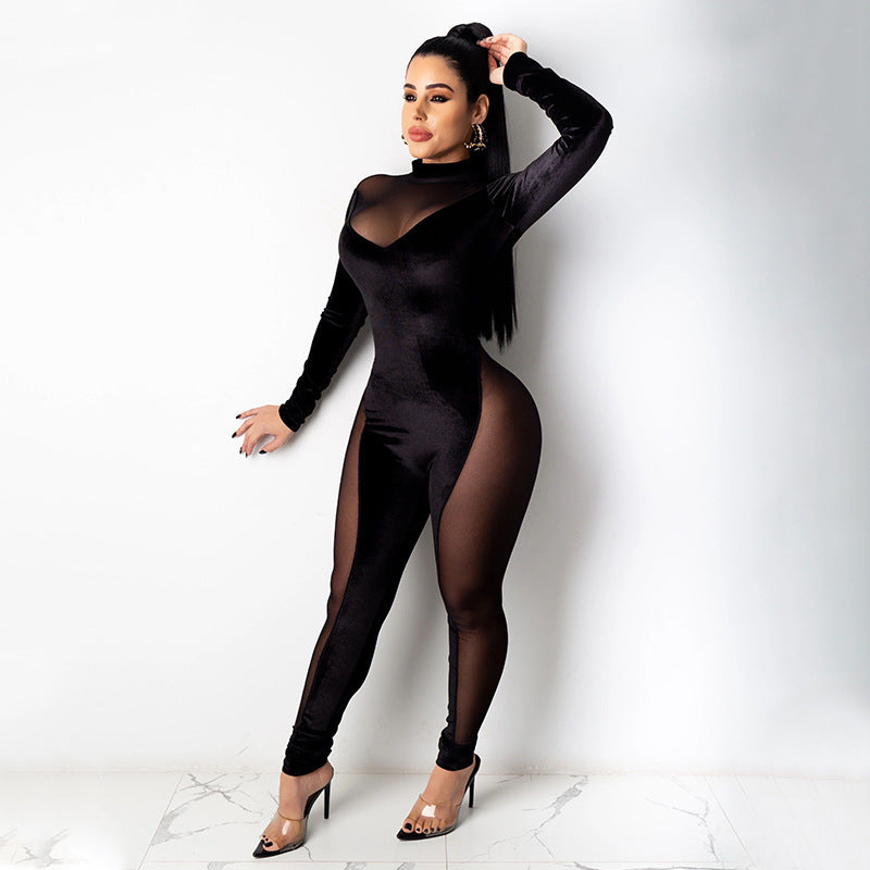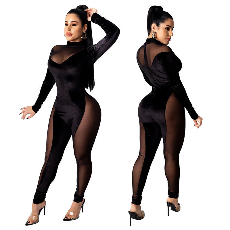 Sexy mesh stitching jumpsuit