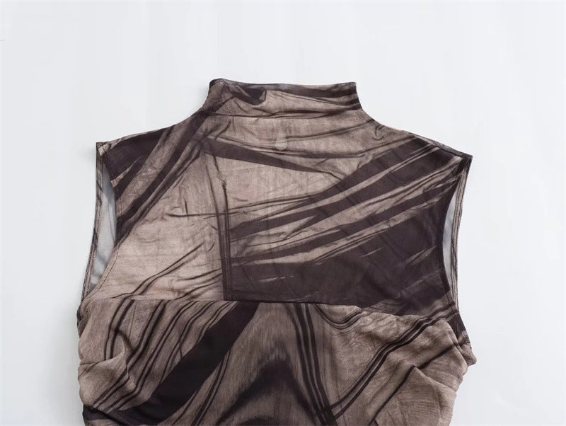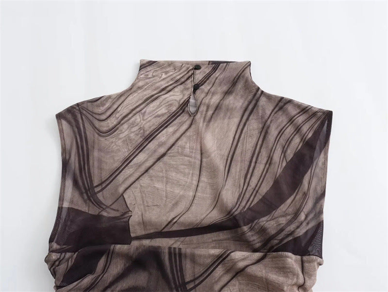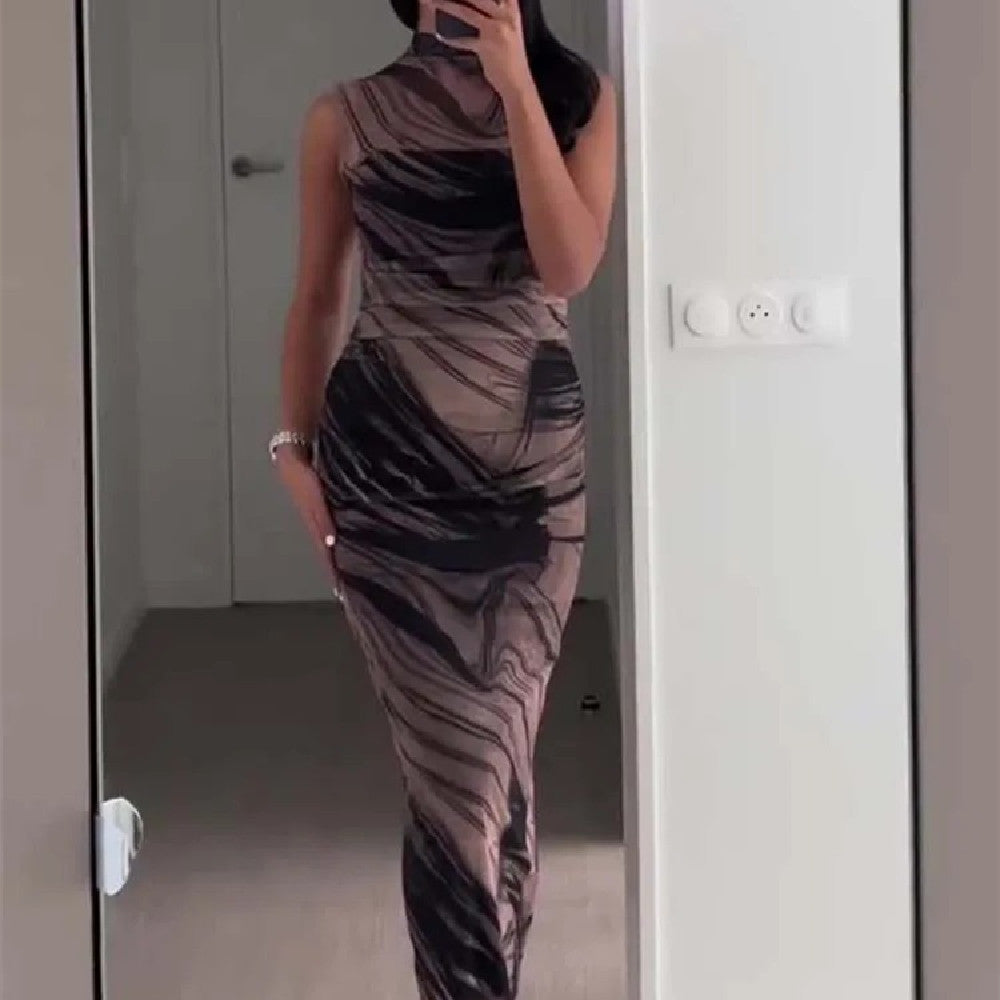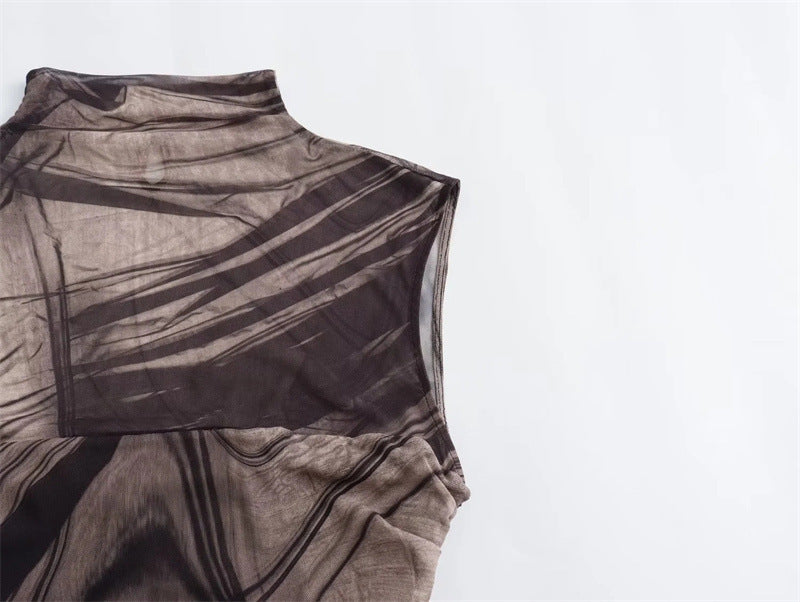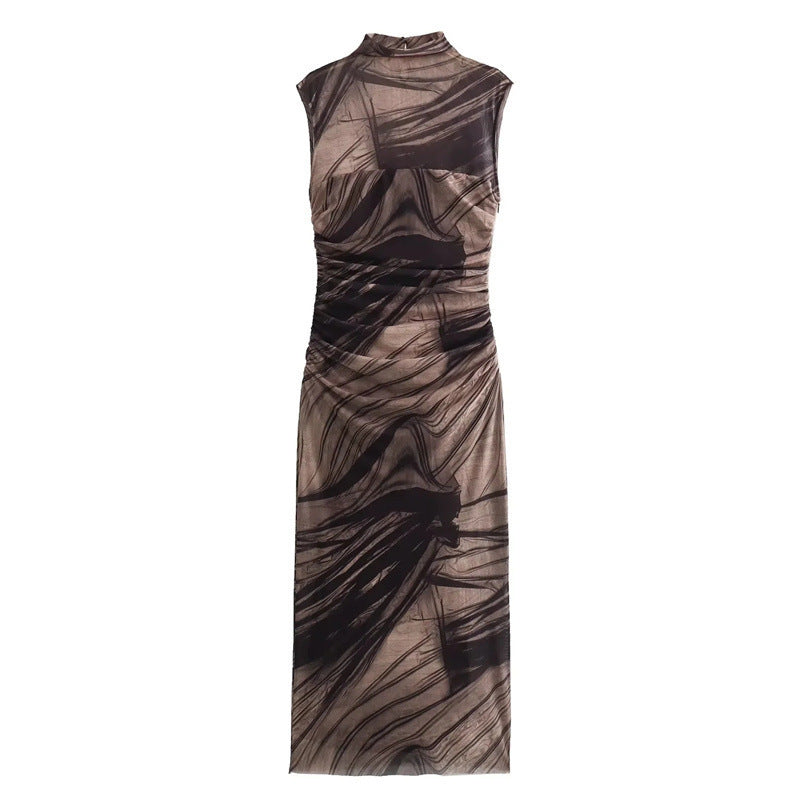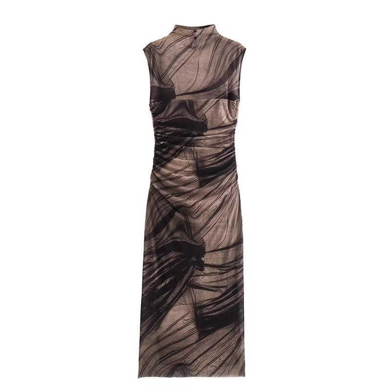 Simple Plain Color Series Line Style Silk Net Printing Dress