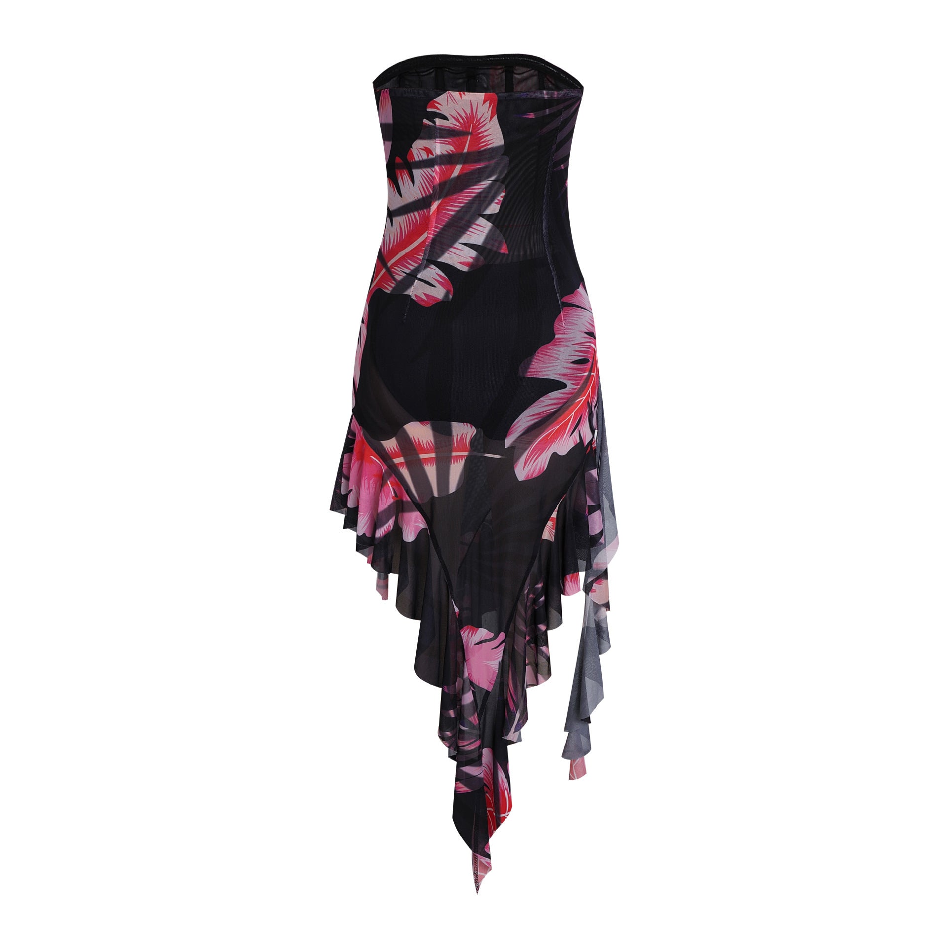 Slim Fit Slimming Dress Printed Backless Sexy Irregular Tube Top Short Skirt