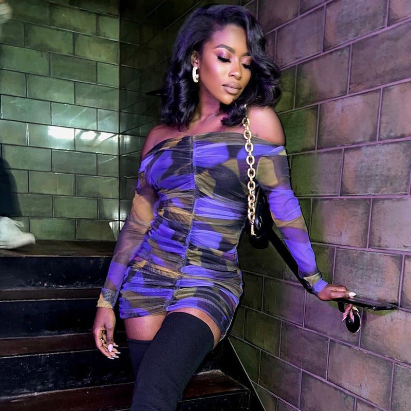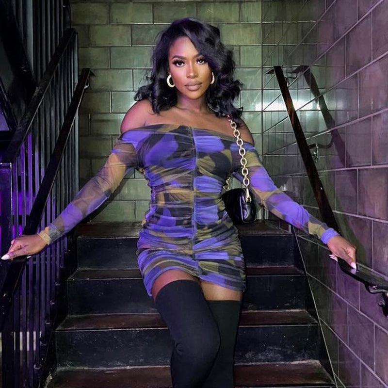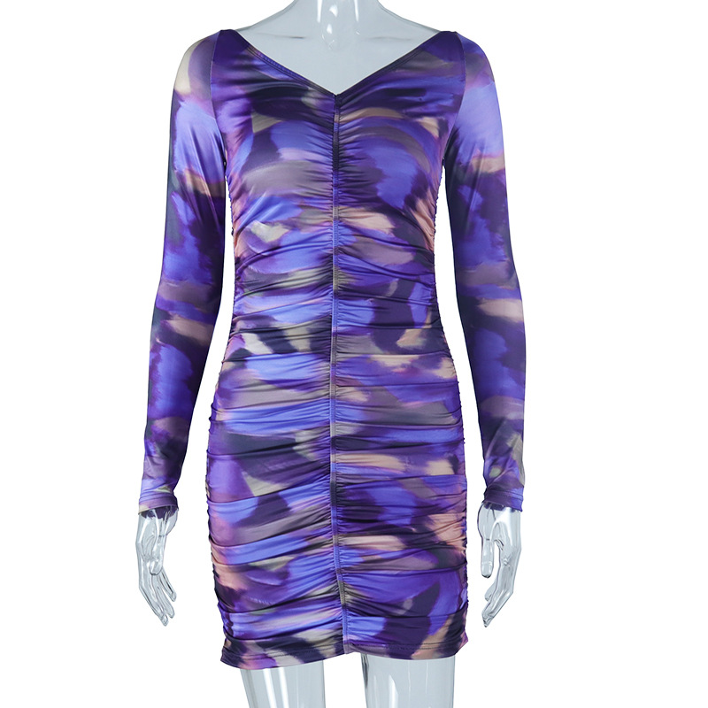 Slotted Neck Long Sleeve Hip Wrap Dress Trend