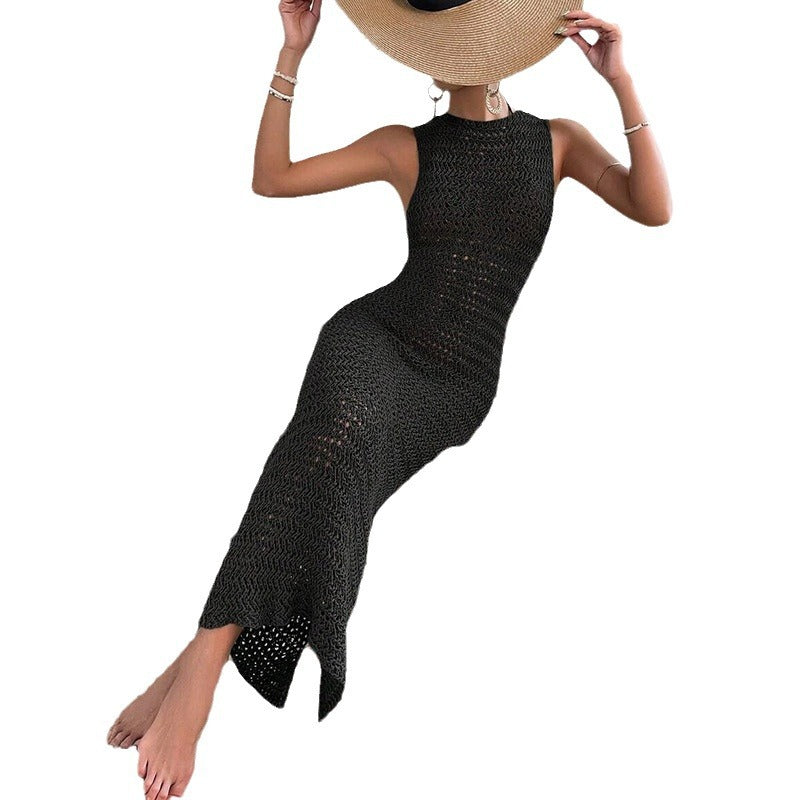 Solid Color Knitted Hollow Beach Bikini Swimsuit Blouse