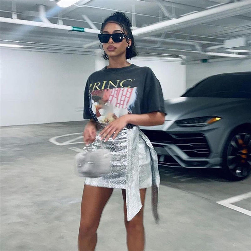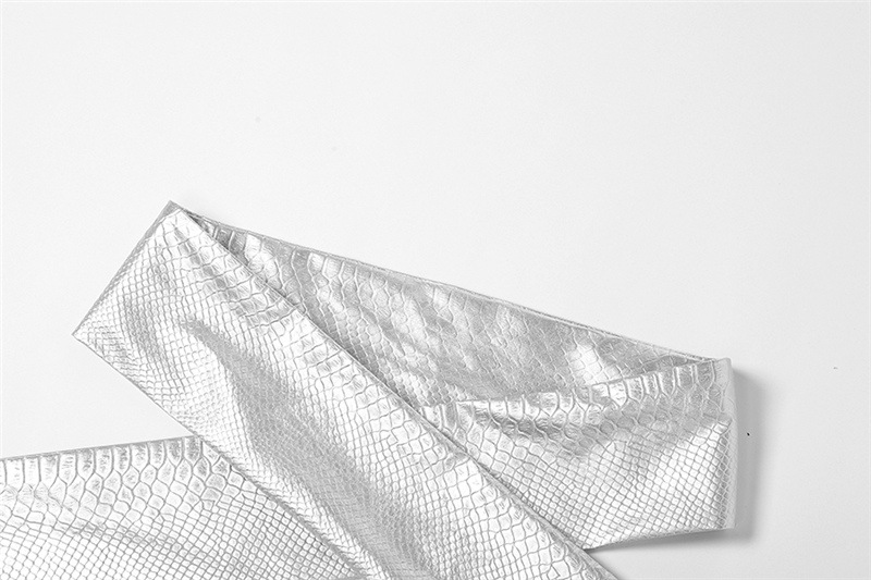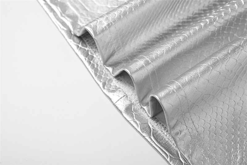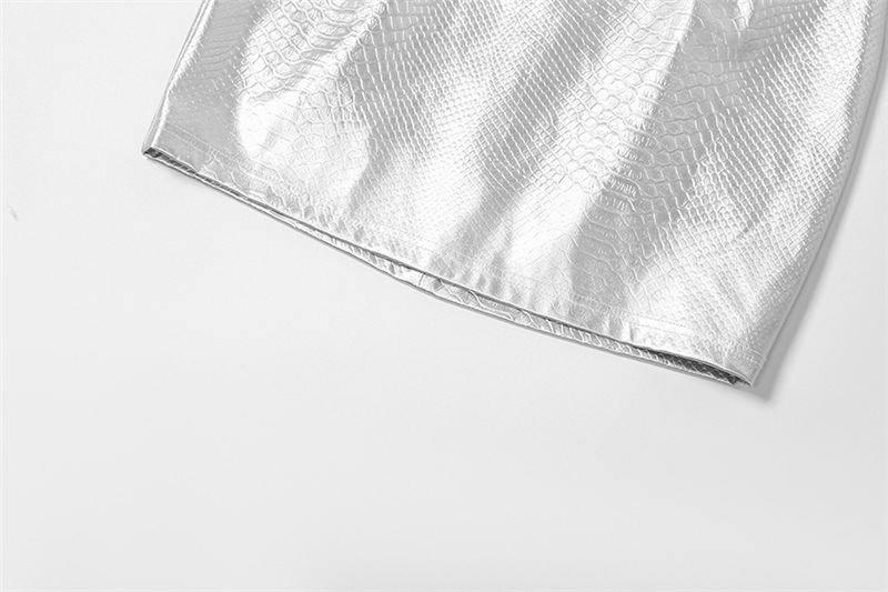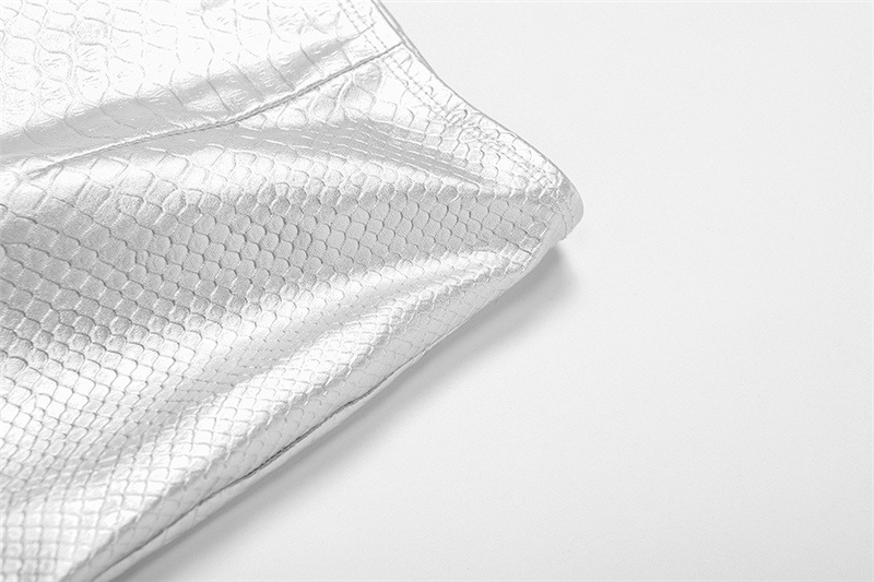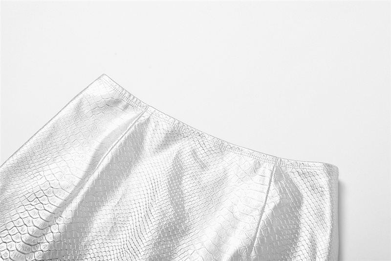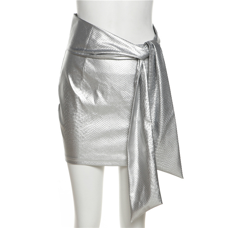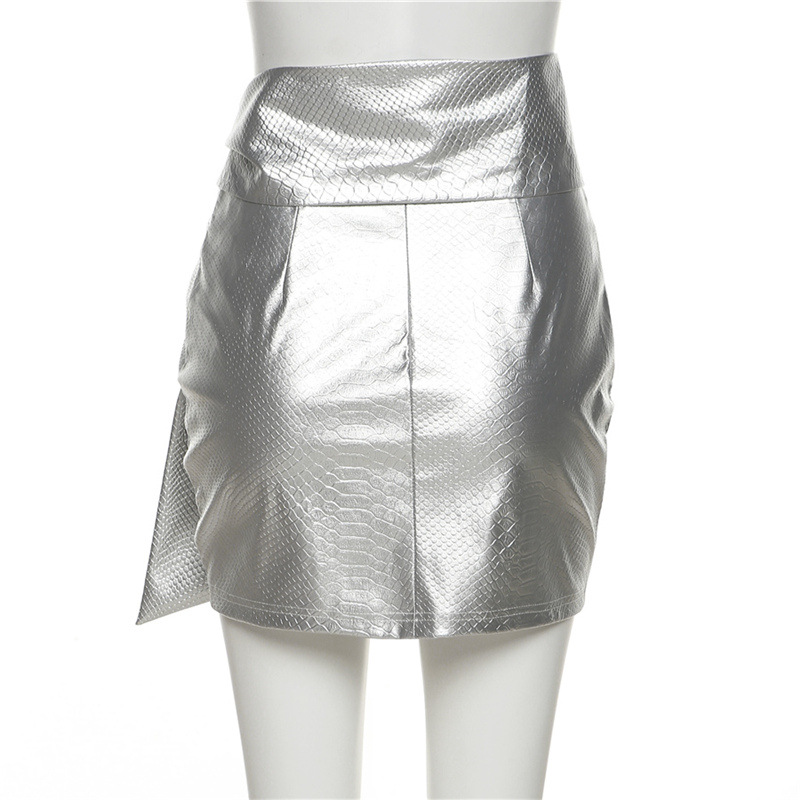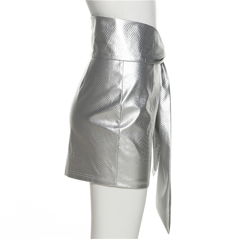 Summer Silver Fashion PU Faux Leather Snake Print High Waist Lace Up Skirt